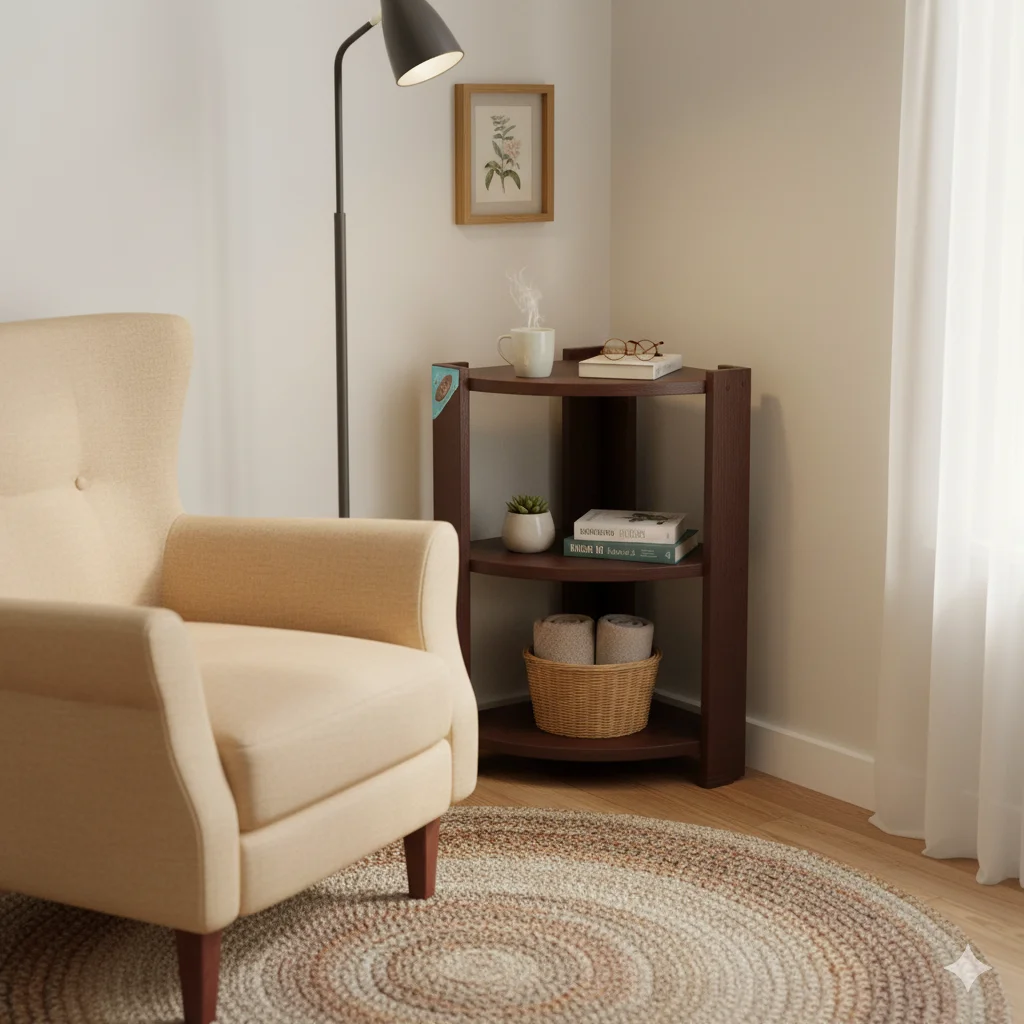 The 3 Tier Particle Board Corner Stand is a compact and versatile furniture piece designed to maximize space while adding style to your interiors. Crafted from high-quality particle board, it offers a sturdy and durable construction built to last. Its three-tier design provides ample room for displaying décor, plants, books, or collectibles, while the corner-specific shape ensures it fits snugly in any corner, making it perfect for small or limited spaces. Finished in multiple color options, it blends seamlessly with modern or traditional interiors. Ideal for living rooms, bedrooms, offices, or study areas, this corner stand combines functionality and elegance, offering a practical solution for organizing and showcasing your favorite items. Thrissur’s only 5⭐ rated furniture shop, offering custom orders and free delivery (T&C apply), ensures quality, style, and convenience with every purchase.