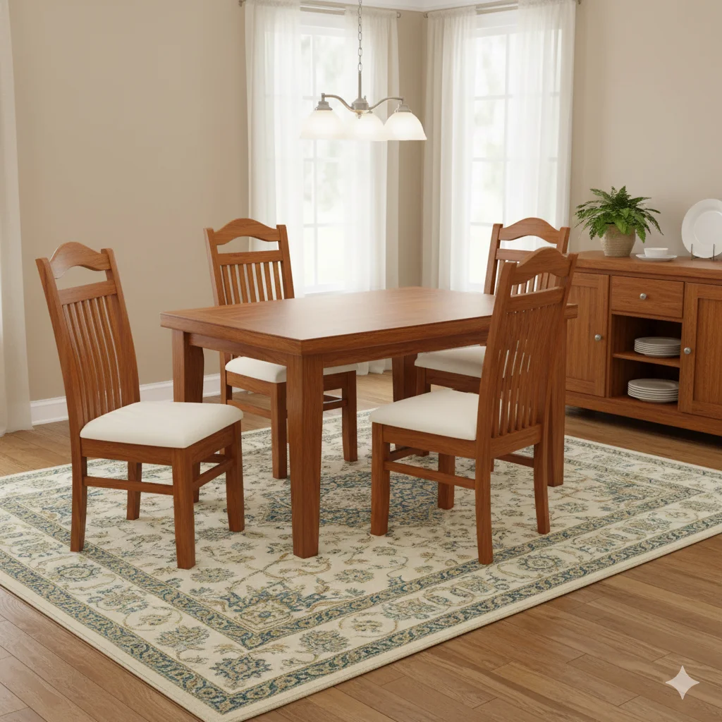 The A Frame Teak Cushion Dining Chair is a perfect blend of style, comfort, and durability for modern dining spaces. Crafted from premium quality teak wood, this chair boasts a robust and long-lasting frame that ensures stability and elegance for everyday use. Its A-shaped backrest design provides ergonomic support while adding a contemporary visual appeal to your dining area. The soft cushioned seat enhances comfort, making long meals and gatherings a pleasant experience. Expertly handcrafted, the chair combines traditional craftsmanship with modern aesthetics, creating a versatile piece that complements both contemporary and classic interiors. Available in Cushion and Wood variants, and in Teak, Mahogany, or Acacia finishes, it can be customized to suit your style and space. Thrissur’s only 5-star rated furniture shop, offering tailored custom orders and free delivery (T&C apply), ensures that every purchase delivers unmatched quality, style, and convenience.