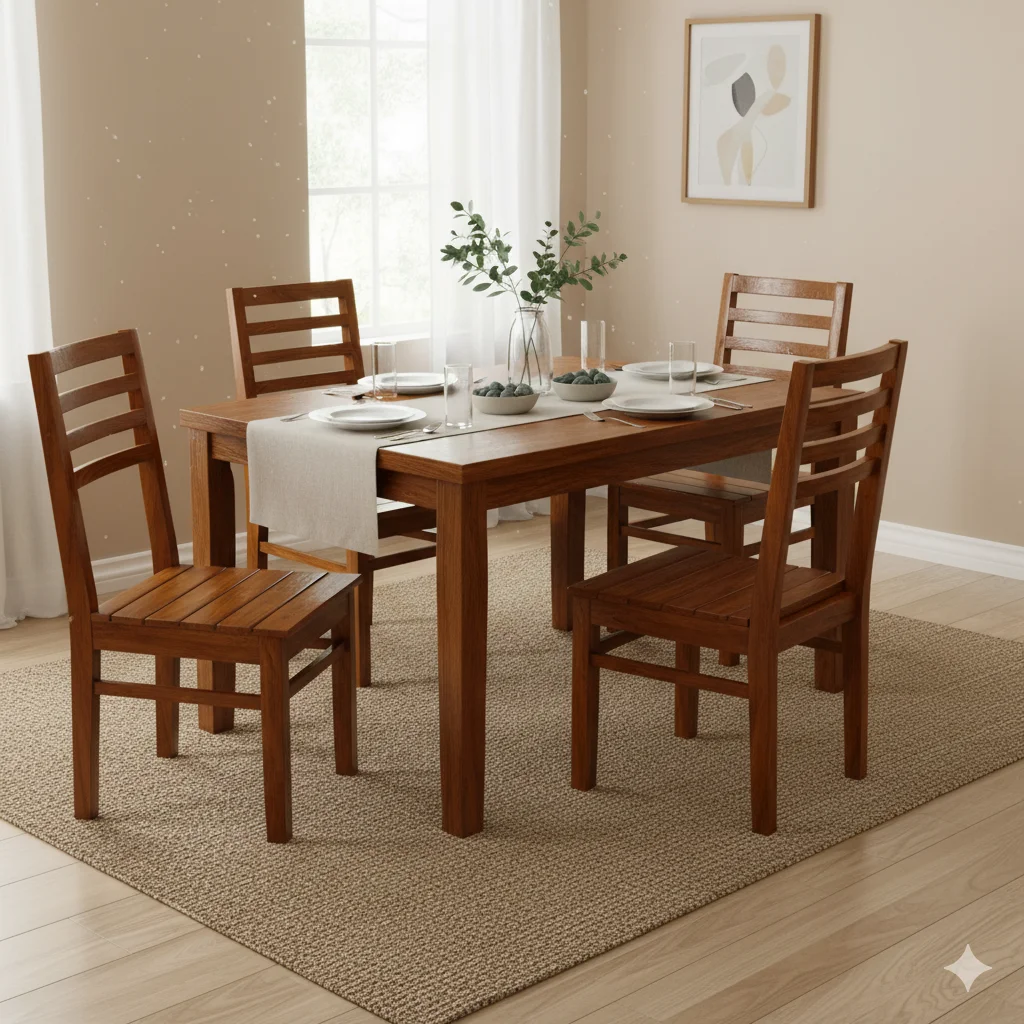 The ARC Teak Palaka Dining Chair blends simple elegance with durable craftsmanship, making it an ideal choice for compact and everyday dining spaces. Crafted from premium quality teak wood, it features a gently curved ARC-shaped backrest and a sturdy Palaka wooden seat, providing ergonomic support and firm, long-lasting comfort. Designed for affordability without compromising quality, this chair is available in Cushion or Full Wood variants and finished in Teak, Mahogany, or Acacia, allowing customization to match any dining setup. Its smooth surface ensures easy maintenance, making it practical for daily family use. Combining timeless design, structural strength, and everyday usability, the ARC Dining Chair adds both style and convenience to any home. Thrissur’s only 5-star rated furniture shop offers this chair with custom orders and free delivery (T&C apply), guaranteeing quality and satisfaction with every purchase.