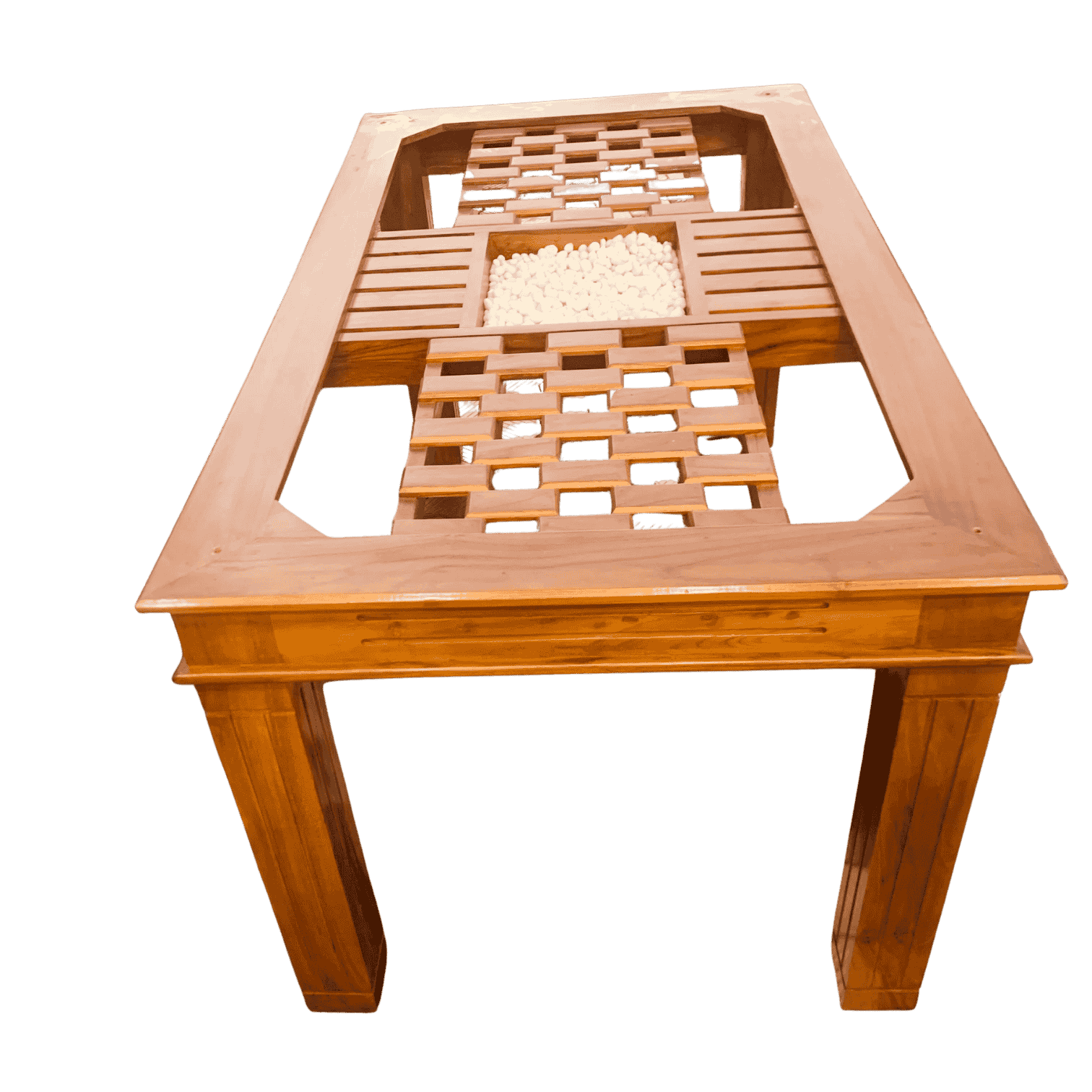 The Biscuit Katta Teak Dinning Table 5×3 is a beautifully crafted dining table that blends elegance, artistry, and functionality for homes seeking a premium dining experience. Made from solid premium teak wood, it features the signature biscuit-pattern engraved tabletop, highlighting meticulous craftsmanship and adding a unique, sophisticated touch to any dining space. Measuring 5×3 ft, it comfortably seats 4–6 people, making it ideal for small families, intimate meals, and gatherings. The table is supported by thick, sturdy legs, ensuring long-lasting durability and excellent stability. It comes with a 12 mm plain glass top, offering a smooth, polished surface that enhances its elegance while being easy to clean. For personalization, options include cooling glass, etched glass, or marble tops, allowing the table to seamlessly match various interior styles. Available in multiple sizes—including 6×3.5, 6×3, 5×3, and 4×3 ft—or fully customized dimensions, this dining table adapts perfectly to different dining rooms and interior layouts. With its premium teak construction, timeless biscuit-pattern design, and robust build, the Biscuit Katta Teak Dining Table serves as both a functional dining solution and a striking centerpiece. As Thrissur’s only 5-star rated furniture shop, offering custom orders and free delivery (T&C apply), we guarantee superior craftsmanship, trusted quality, and an elegant dining experience that lasts for years.