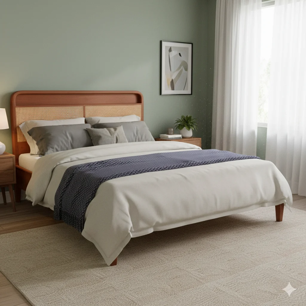 🎨 Design: Cane-work headboard with clean palaka-style frame