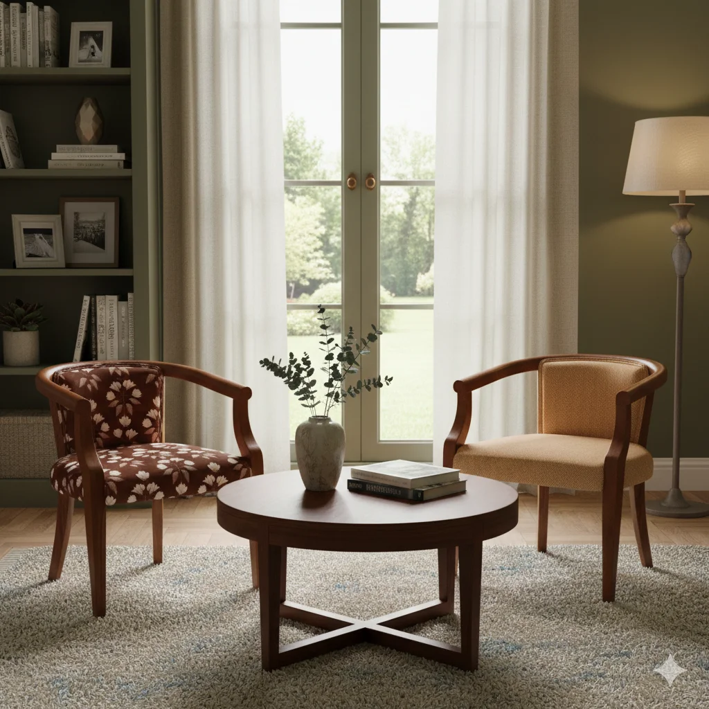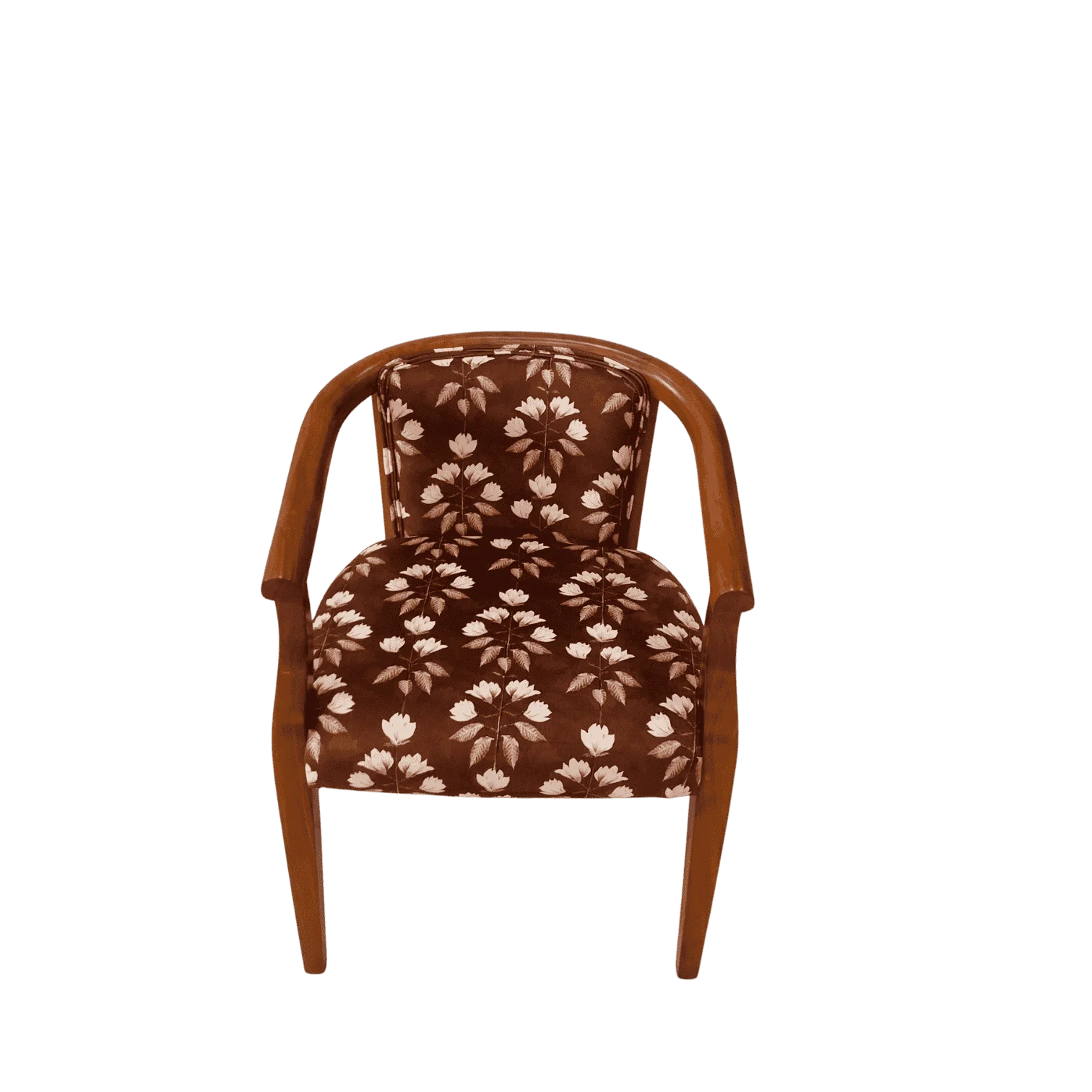 Elevate your outdoor or sitout experience with the ClassicArc Teak Cushion Sitout Chair, expertly crafted from premium solid teak wood and featuring a smooth curved-arm contemporary design. Designed with a cushioned seat and backrest, it ensures superior comfort for long sitting sessions. Shown here in the versatile teak finish, this model is also available in Acacia and Mahogany, combining style, durability, and timeless appeal. The elegant arc design and ergonomic back curve make it perfect for verandahs, patios, balconies, cafes, and reading corners, while the smooth polished finish highlights the natural wood grain for a refined aesthetic. Backed by Thrissur’s 5-Star Google Rating, we offer custom orders and free delivery (T&C apply), ensuring you receive a chair that perfectly blends comfort, style, and quality.