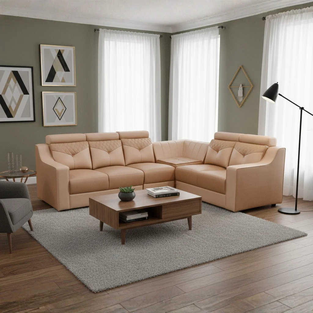 The Firi Full Cover Corner Sofa Set 2+2+1 is thoughtfully designed to deliver practical comfort, easy maintenance, and everyday durability, making it an ideal choice for modern homes. Upholstered in high-quality Rexin and paired with balanced normal foam cushioning, this sofa features a smooth, full-cover finish that offers a clean, uniform look while remaining simple to clean and maintain. Shown in a 2+2+1 + Corner (L-shaped / sectional) layout with comfortable seating for five, it measures 187 × 36 × 40 inches, providing generous space for family relaxation and daily use. The functional corner configuration efficiently maximizes seating while optimizing room layout, making it suitable for both compact and spacious living areas. Its firm yet comfortable foam support ensures reliable seating for extended periods, while the minimal, versatile styling blends effortlessly with modern as well as traditional interiors. Available in a wide range of configurations—from individual seaters to L-shape, corner, and sectional sofa sets—the Firi sofa set adapts easily to diverse home requirements. Backed by Thrissur’s 5-star rated furniture shop, with customization options and free delivery (T&C apply), it offers a reliable, budget-friendly, and family-ready seating solution for everyday living.