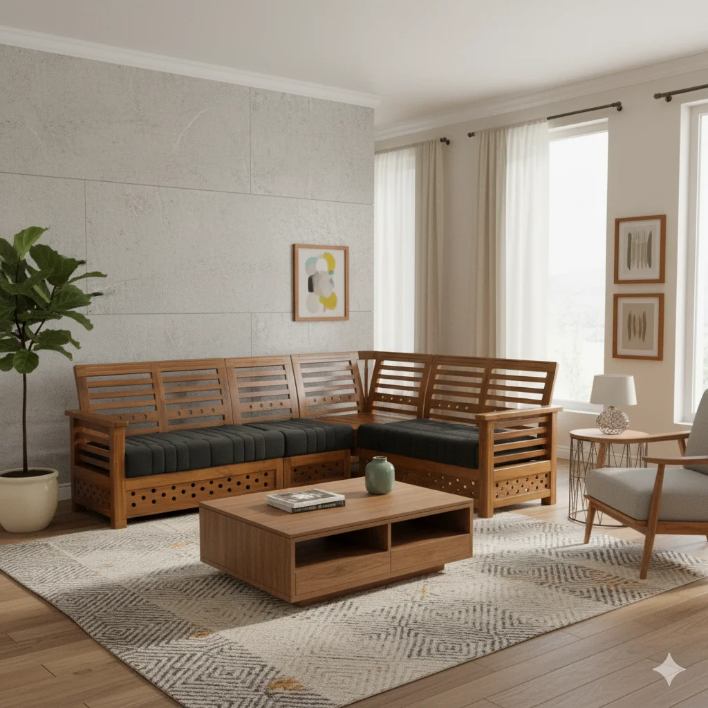 🛋️ Model: Kabali Teak Corner Sofa Set 2+2+1