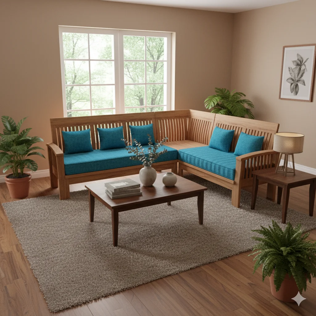 🛋️ Model: Kambi Teak Corner Sofa Set 2+2+1