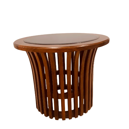 🫖 Model: Kotta Round Teak Glass Teapoy