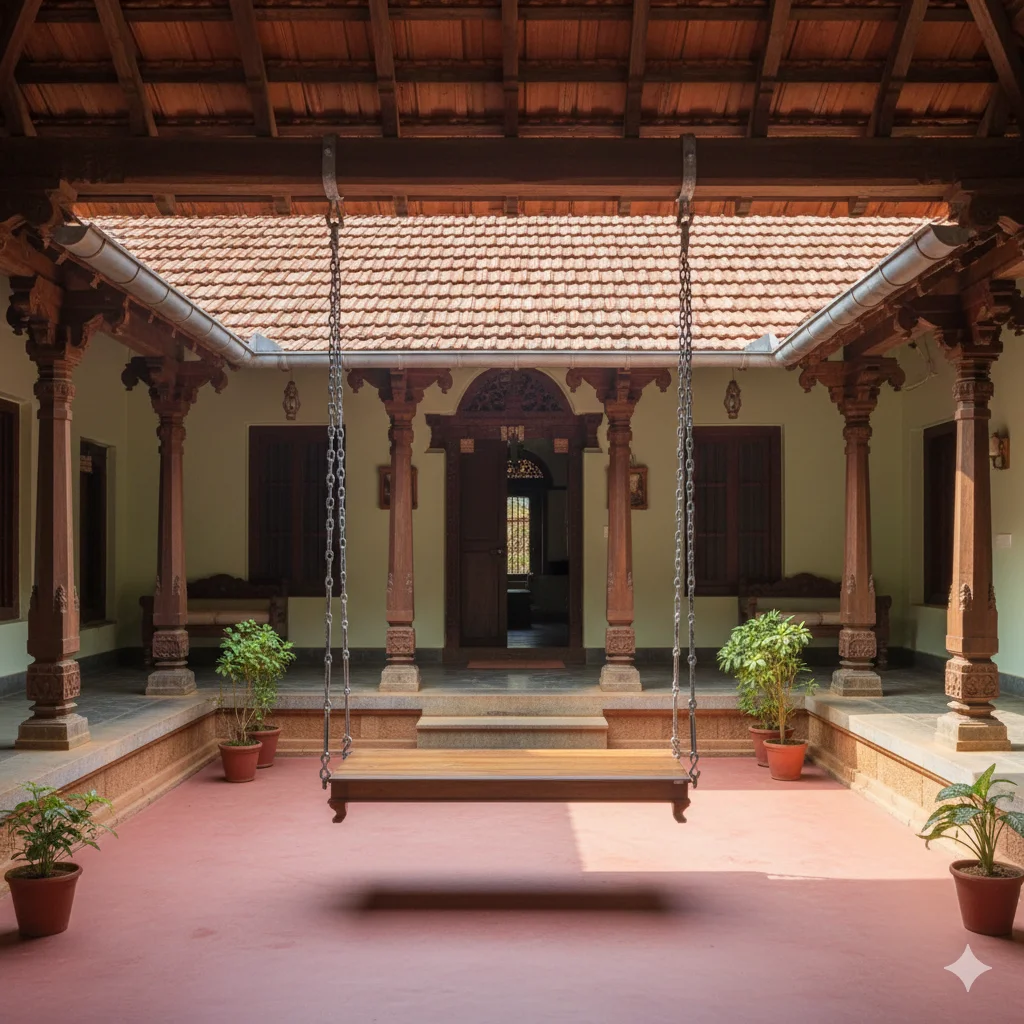 🏠 Layout: Traditional mankal-base swing; customizable in size and wood.