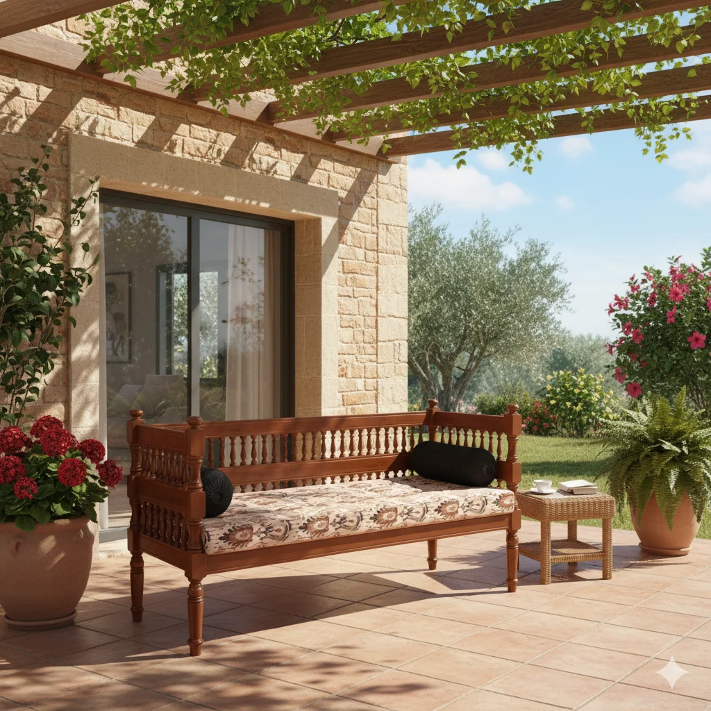 🛋️ Model: Maple Bench Teak 3 Seater with Cushion