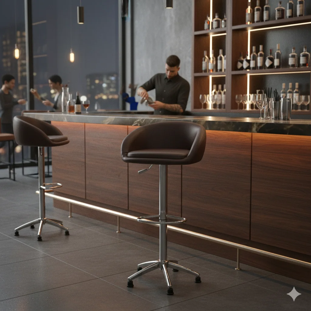 🏠 Layout: Square seat bar stool; height adjustable with 360° swivel.