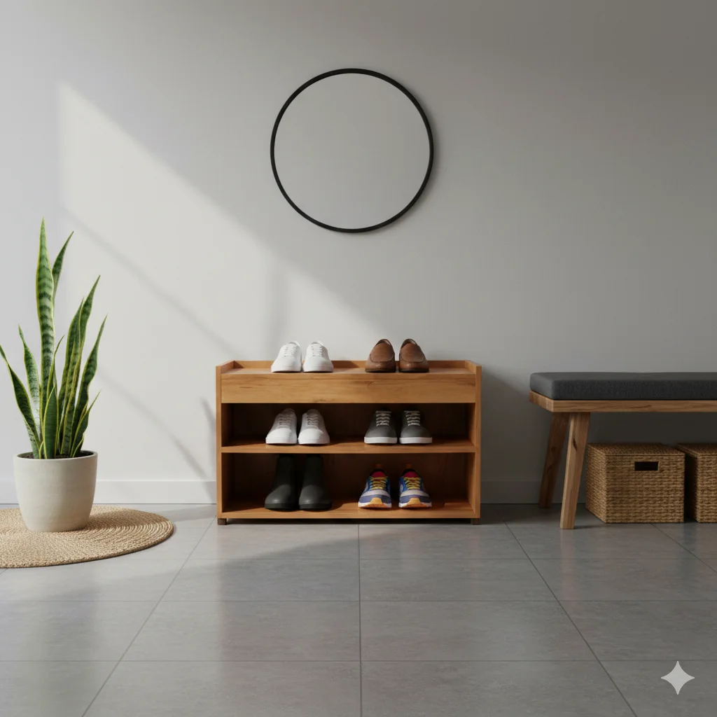 🪑 Make: Open Shelf 2 Tier Particle Board Shoe Stand — simple and spacious open organizer.