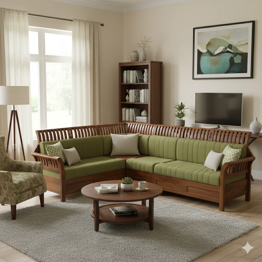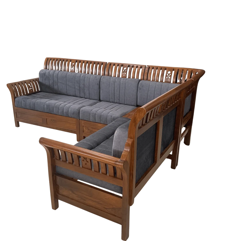 🛋️ Model: Orchid Teak Corner Sofa Set 2+2+1