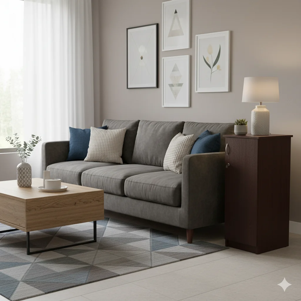 The Particle Board Side Table 48×18×16 is a practical and versatile storage solution for bedrooms, halls, and office spaces. Made from high-quality particle board, it is durable and sturdy, designed for everyday use. The table features one door with two internal compartments, providing organized storage for books, décor, or essentials. Its spacious top surface offers room for lamps, décor pieces, or daily-use items, while the compact, medium-length design ensures it fits comfortably in various spaces. Perfect as a bedside table, side stand, display table, or TV accessory stand, it combines functionality with a minimal, neat aesthetic that complements modern interiors. Available in Teak and Antic finishes and custom sizes, it can be tailored to suit your home or office perfectly. Thrissur’s 5-star rated furniture shop offers custom orders and free delivery (T&C apply), ensuring quality, convenience, and style with every purchase.