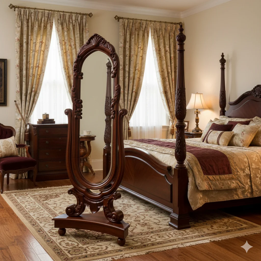 🧍♀️ Type: Floor-standing dressing mirror with classic carved frame