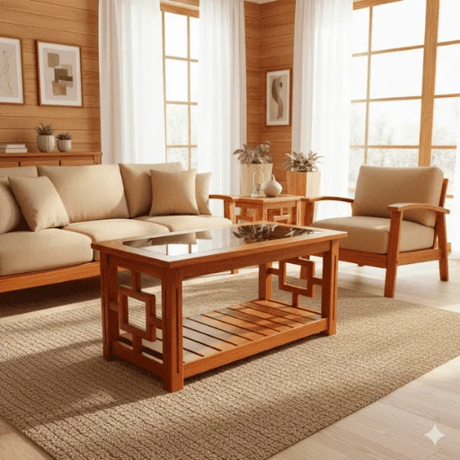 🪞 Glass Top Finish: Showcases teak wood’s natural grain while adding a refined look