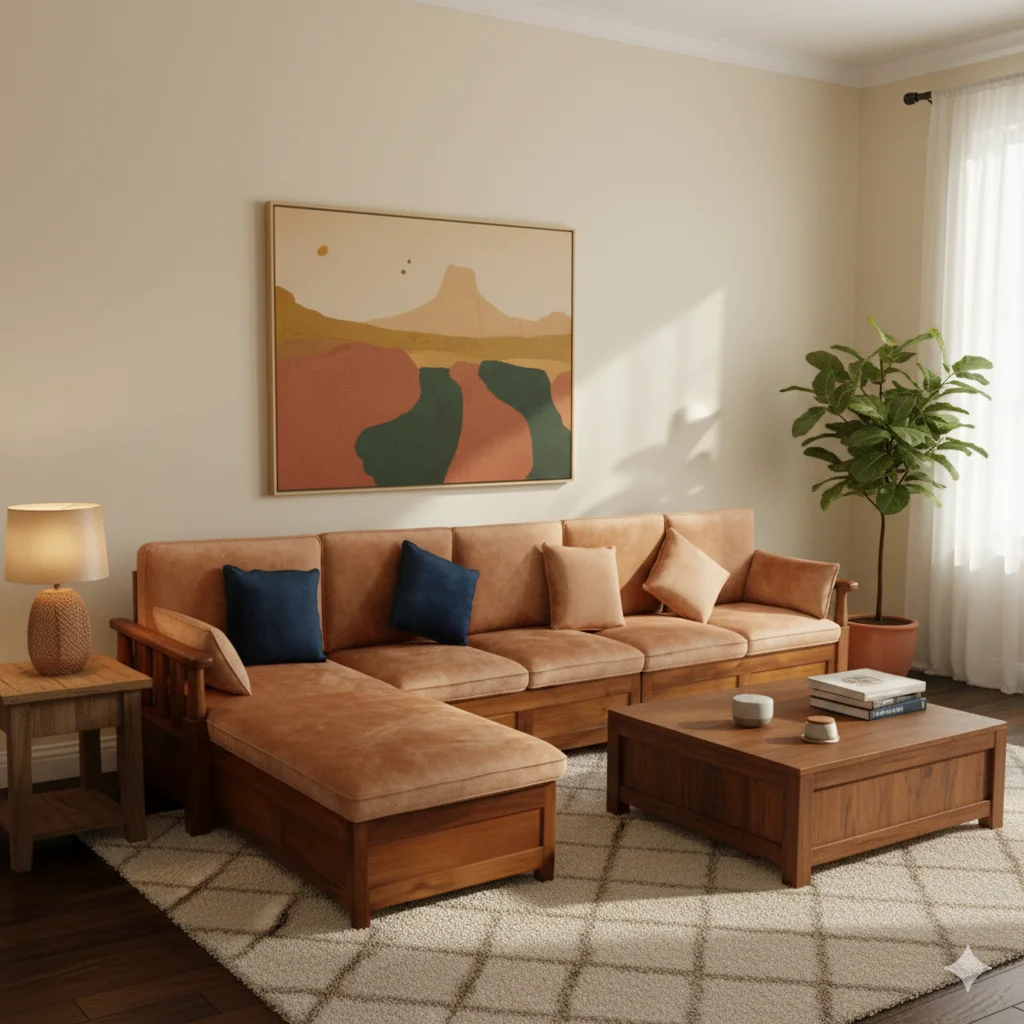 🛋️ Model: TimberLoom Teak Corner Sofa Set 4+Diwan