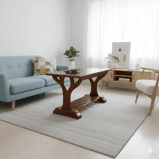 The Tree Teak Glass Teapoy crafted from 100% premium solid teak wood brings a blend of elegance, natural charm, and functional design to any living space. Expertly handcrafted, it features a unique tree-inspired base that adds an artistic and organic touch, making it a striking centerpiece for your living room. The smooth glass top beautifully showcases the teak craftsmanship beneath while providing a modern and sleek finish. With solid teak construction, polished joints, and sturdy design, this teapoy ensures long-lasting durability and stability. Shown in a 34 × 18 × 18 inches configuration, it is available in multiple variants — Acacia, Mahogany, and Teak — with Glass Top or Wooden Top options to perfectly suit your style and space. Designed for easy maintenance, this teapoy combines timeless beauty, practical functionality, and artistic appeal. Thrissur’s only 5-star rated furniture shop, offering custom orders and free delivery (T&C apply), guarantees quality, style, and convenience with every purchase.