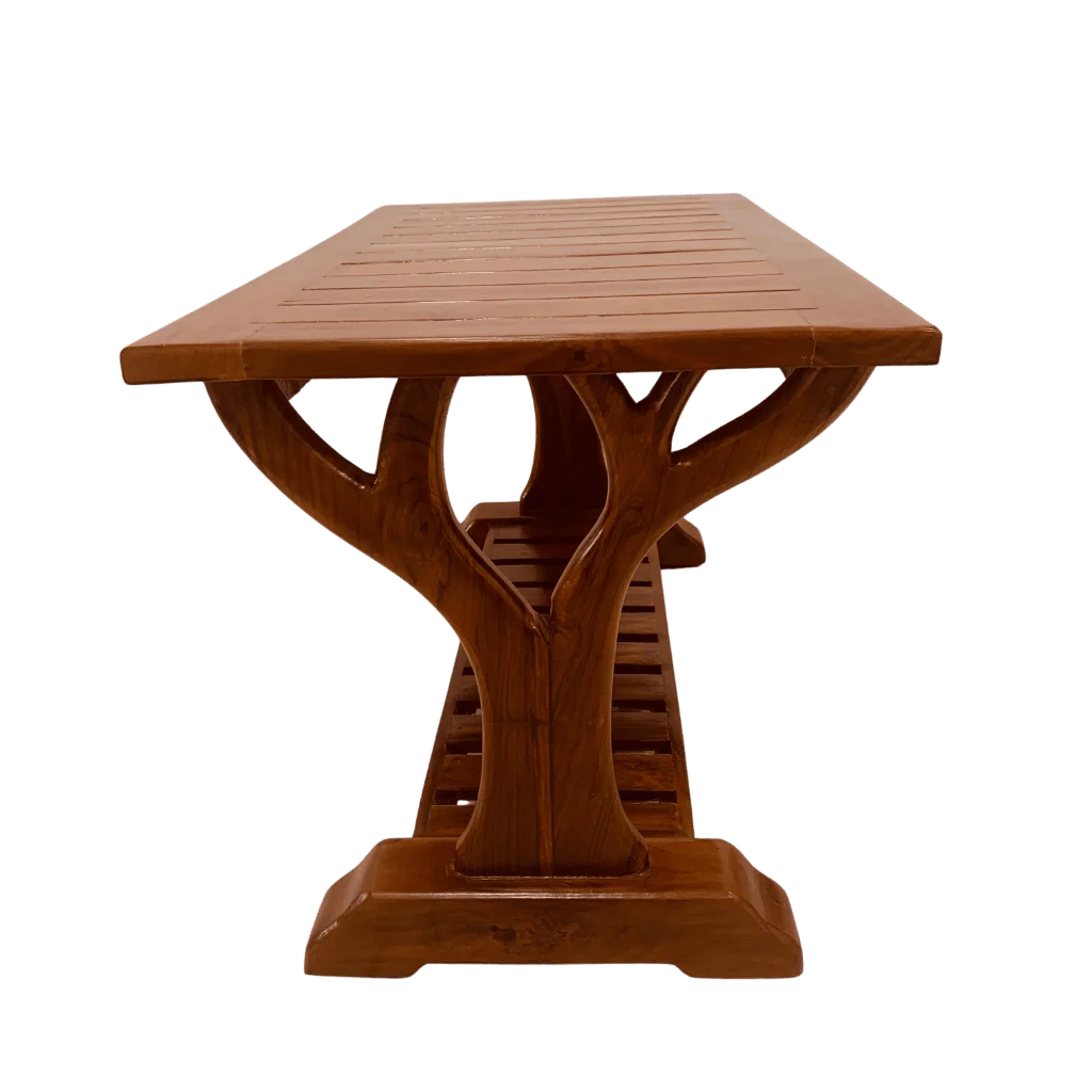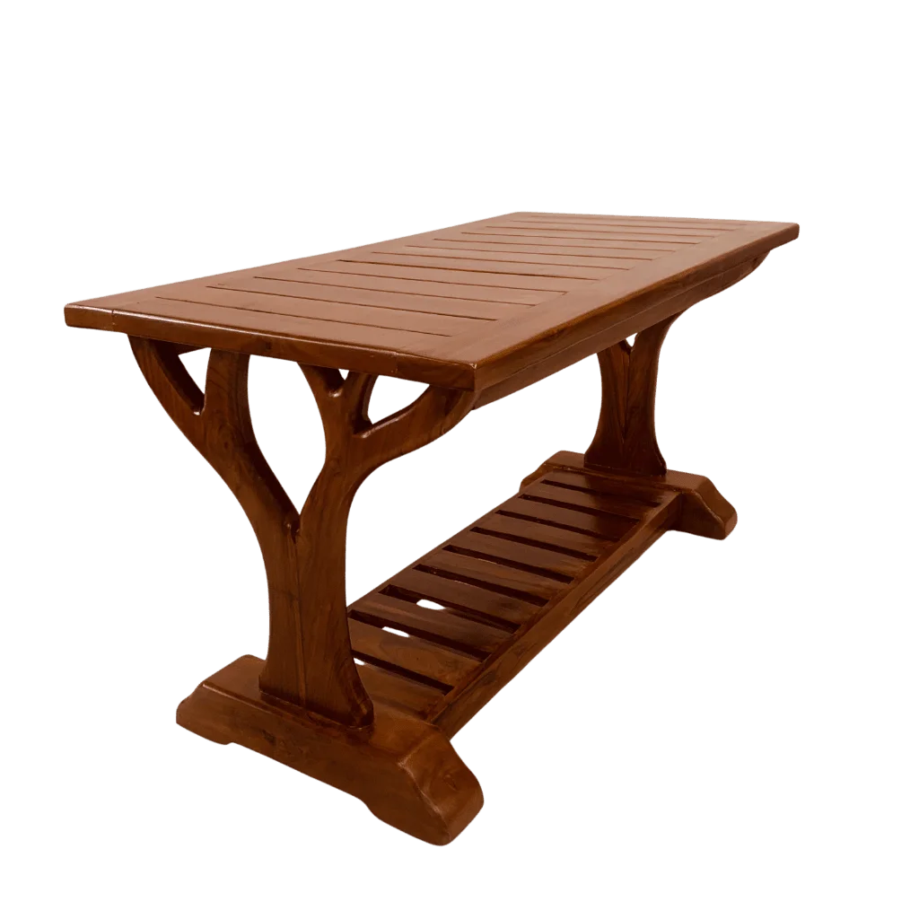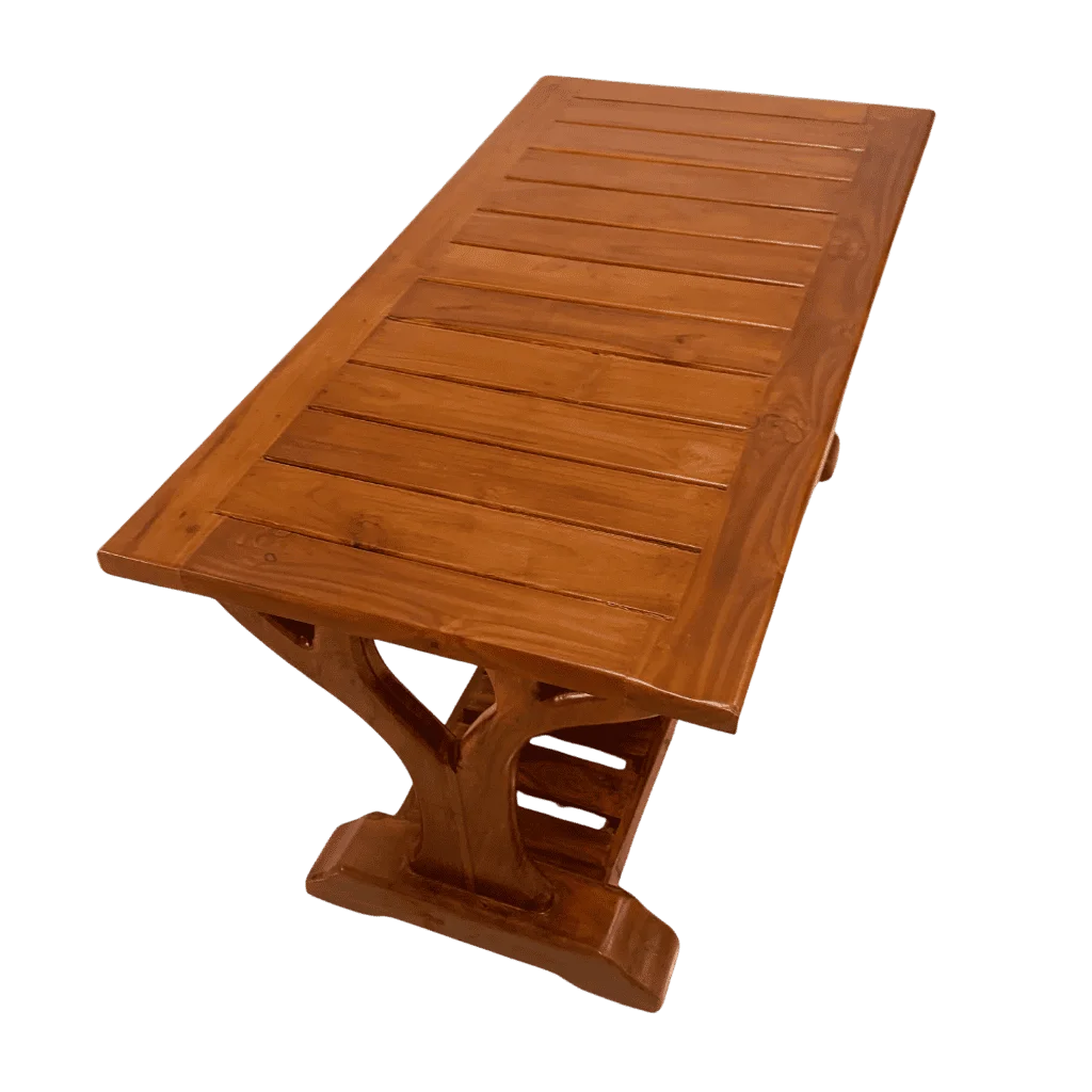 The Tree Teak Palaka Teapoy crafted from 100% premium solid teak wood offers a perfect blend of durability, elegance, and functional design for any living space. Expertly handcrafted, it features a tree-inspired base that brings a natural and artistic aesthetic to your home, while the Palaka top provides a traditional Kerala-style surface that complements both modern and classic interiors. Measuring 34 × 18 × 18 inches, this teapoy is ideal as a living room centerpiece or accent table. Its solid teak construction ensures long-lasting strength, and the smooth edges and polished joints guarantee safety and refinement. Available in Acacia, Mahogany, and Teak, with either Glass or Wooden Top variants, it offers versatile styling options to suit your décor. Combining heritage craftsmanship with contemporary utility, this teapoy elevates your living space while being easy to maintain. Thrissur’s only 5-star rated furniture shop, offering custom orders and free delivery (T&C apply), guarantees quality, style, and convenience with every purchase.