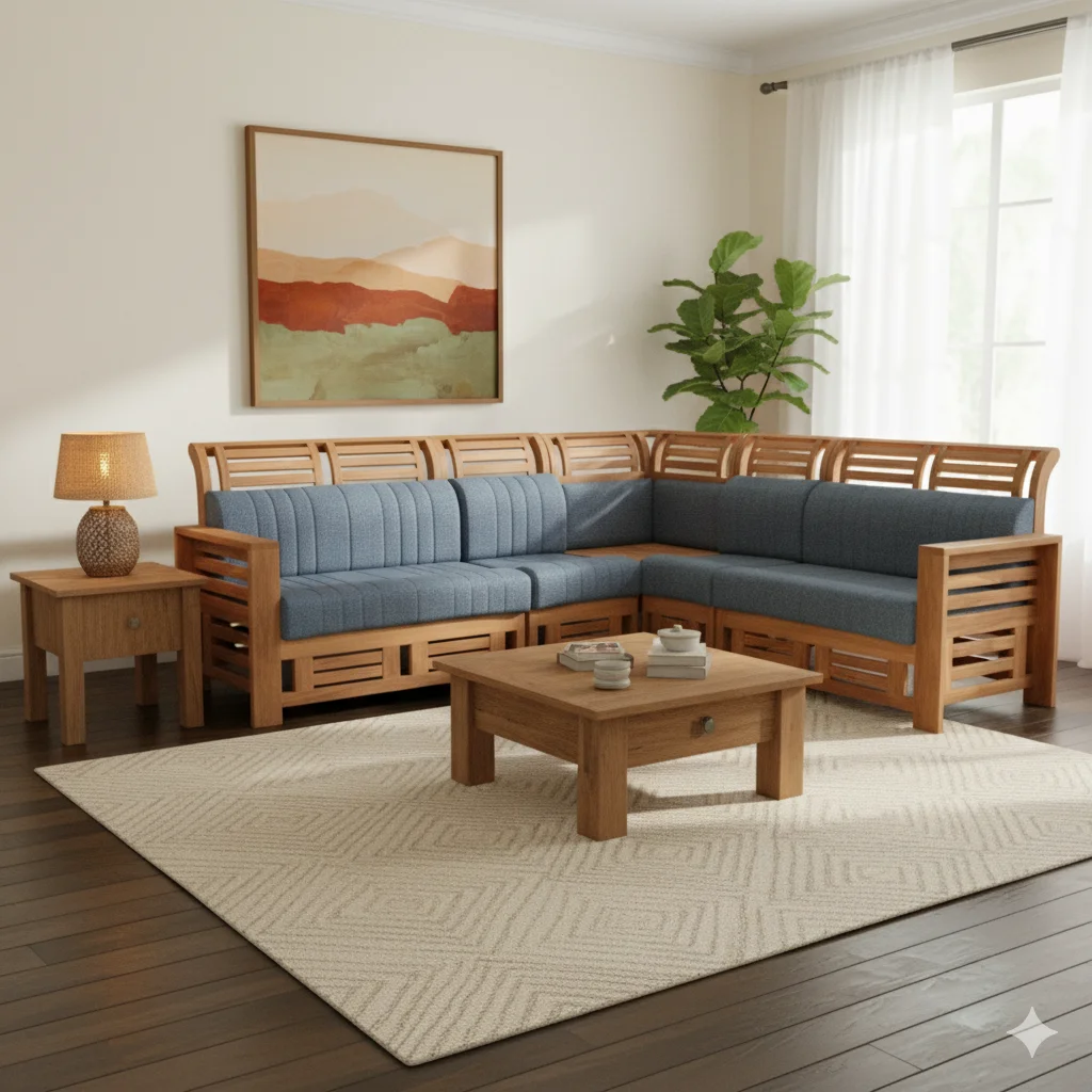 🛋️ Model: Vilangan Teak Corner Sofa Set 2+2+1
